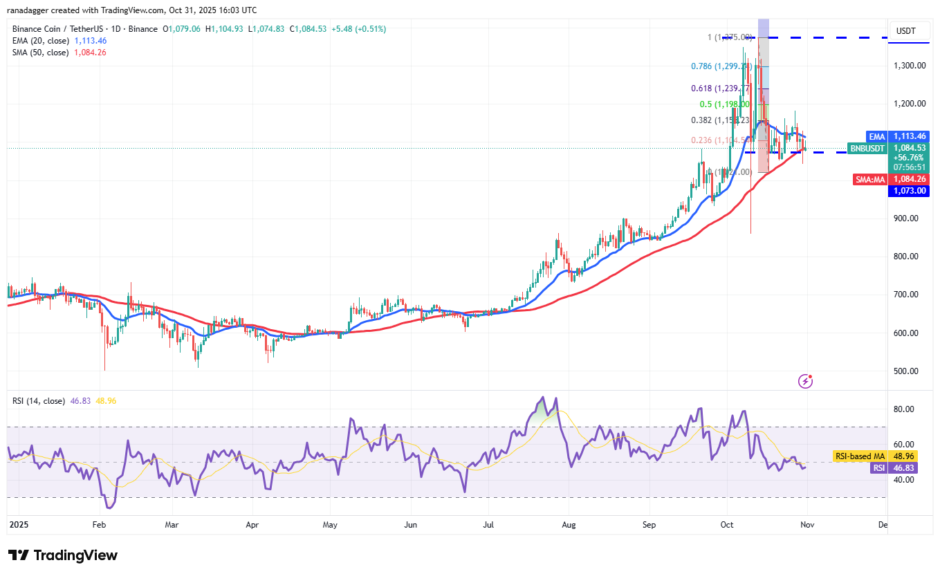 Conversely, if the price closes above the 20-day EMA, this indicates that the bulls are trying to make a comeback. BNB price could then rise to the 38.2% Fibonacci retracement level at $1,156, which could attract sellers. A close above $1,156 paves the way for a rise to the 61.8% retracement level at $1,239.