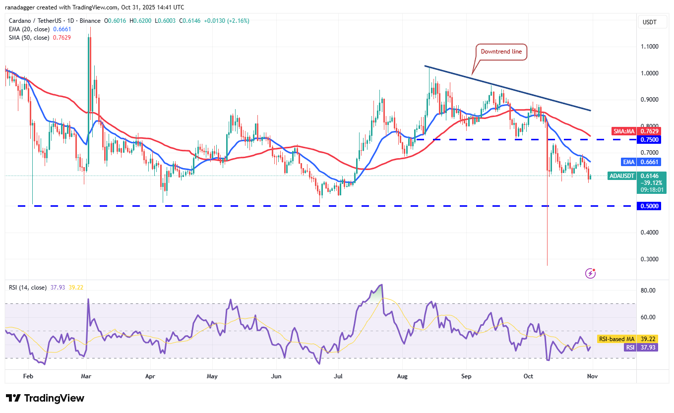 On the upside, a break and close above the 20-day EMA ($0.66) indicates that the bears are losing their grip. Cardano price could then rise to the breakdown level at $0.75 and then to the downtrend line.