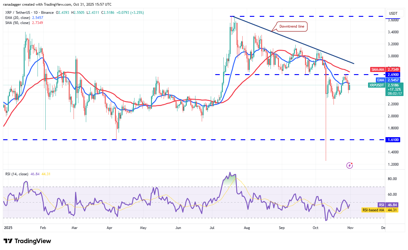ripple(XRP) fell below the 20-day EMA ($2.54) on Thursday, suggesting bears are trying to hold the advantage.