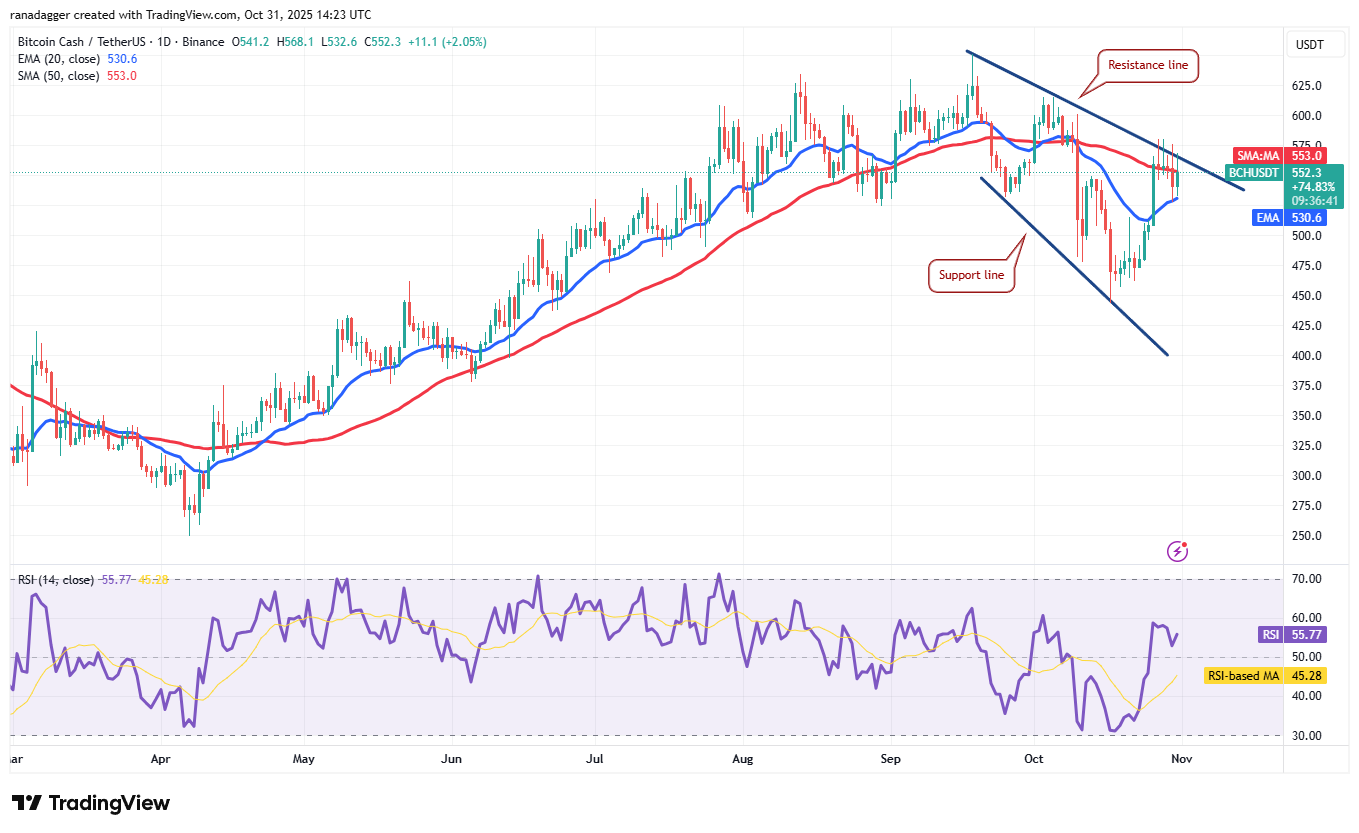 The bulls will have to push and maintain the price of Bitcoin Cash above the resistance line to indicate a possible trend change. BCH/USDT could then rise to $615 and later to $651.