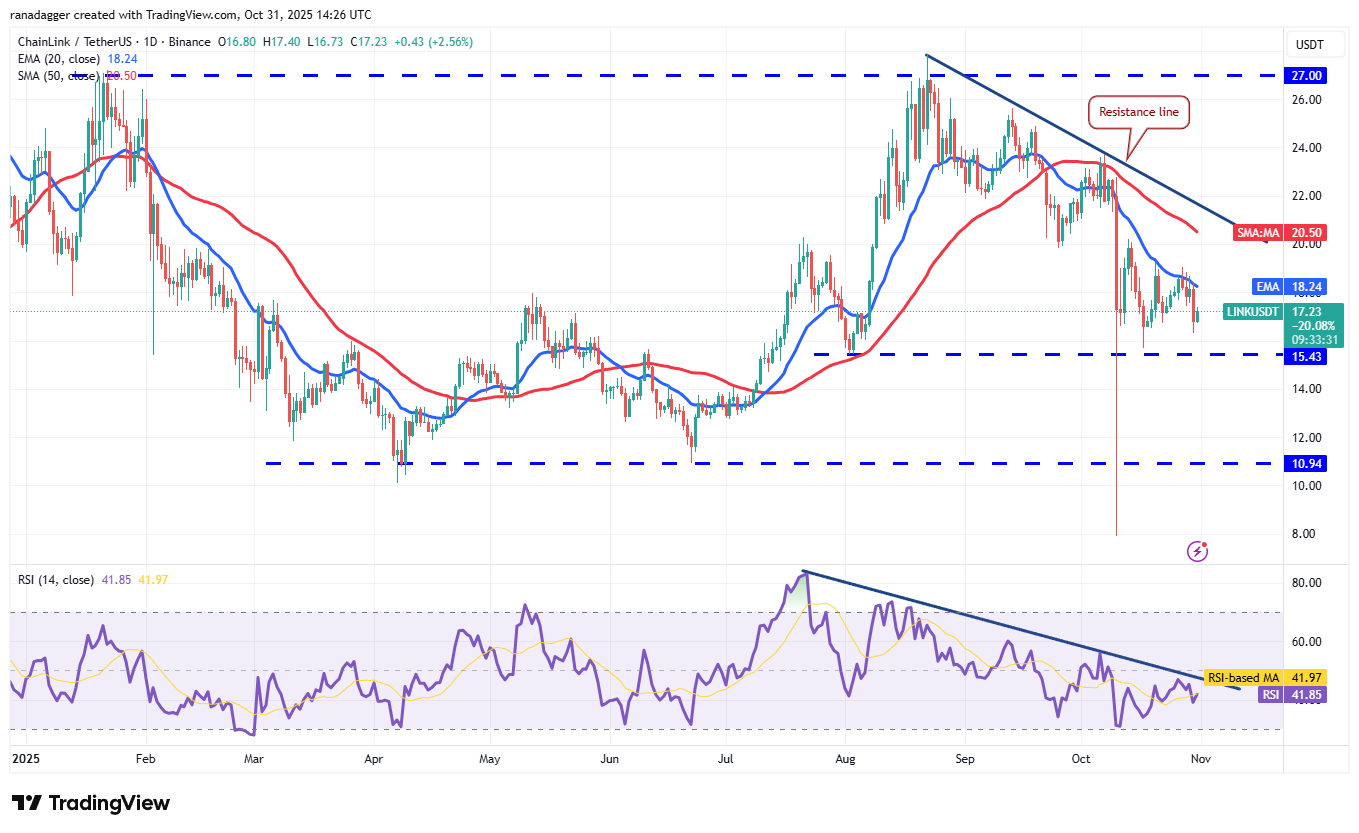 Buyers tried to push Chainlink (connection) above the 20-day EMA ($18.24) on Wednesday, but the bears held their ground.