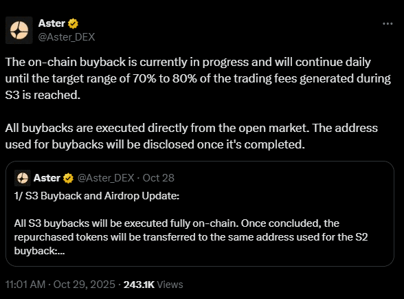 Aster [ASTER] It announced another round of token buybacks, but bulls remained unmoved.