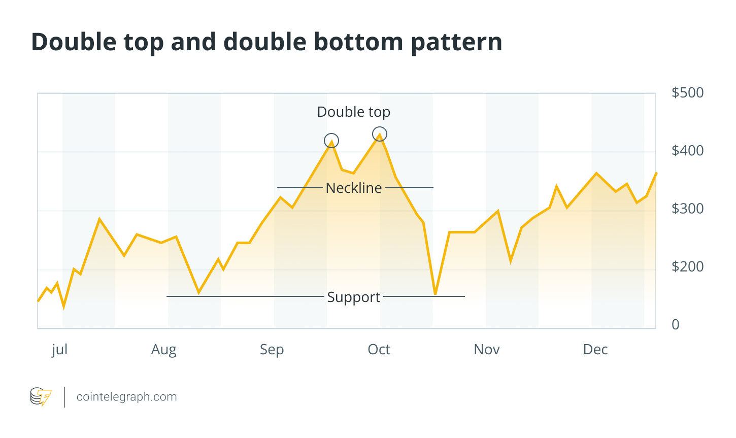 The double tops form an “M” shape near resistance, indicating a potential bearish reversal. The double bottoms form a “W” shape near support, indicating a potential bullish reversal.