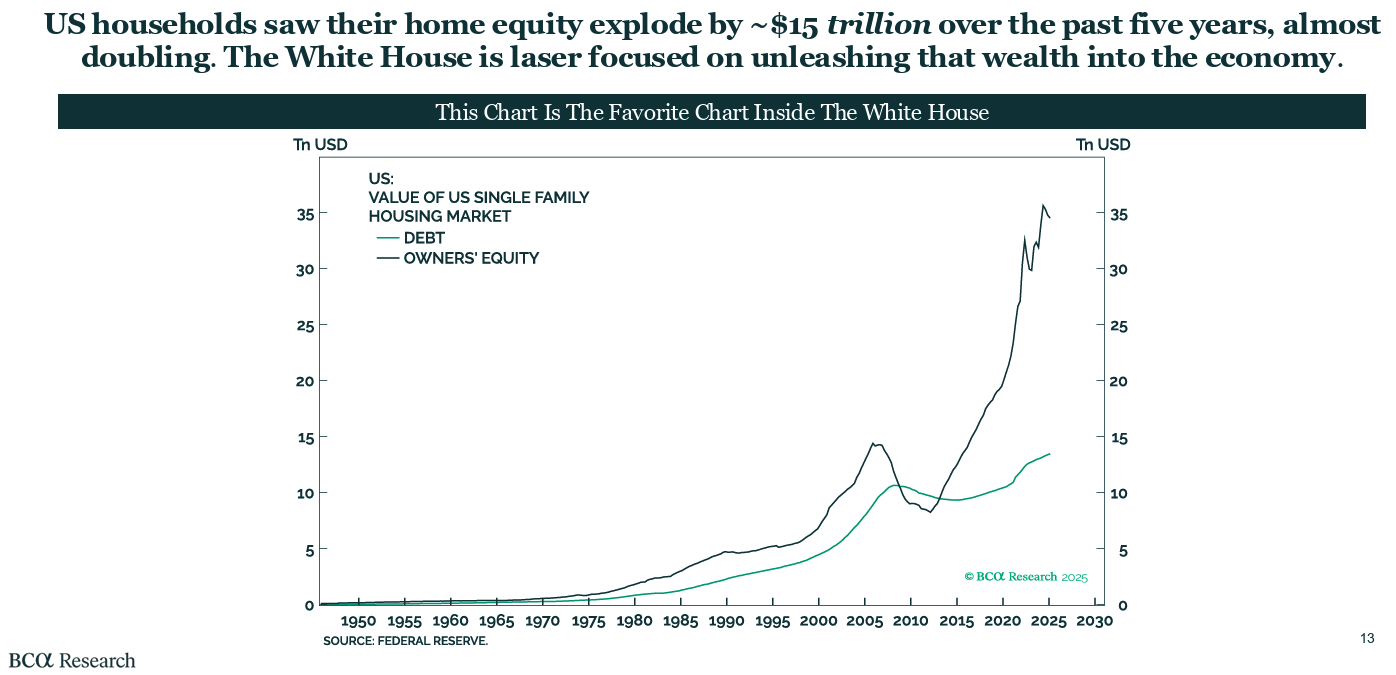Trump also talks about lowering housing costs to release trillions of dollars in home equity trapped by the rapid rise in home prices after 2008.