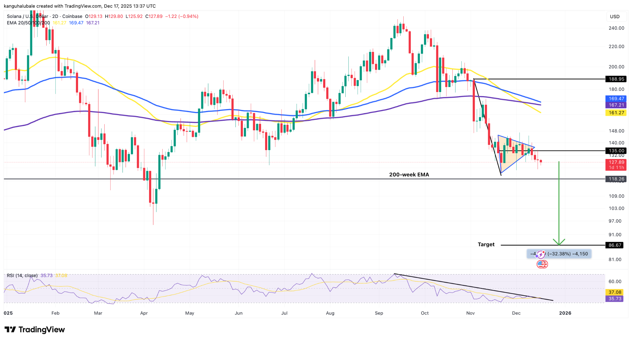Before reaching this level, SOL could find support from the 200-week moving average at $118, where the bulls are expected to make a strong defense.