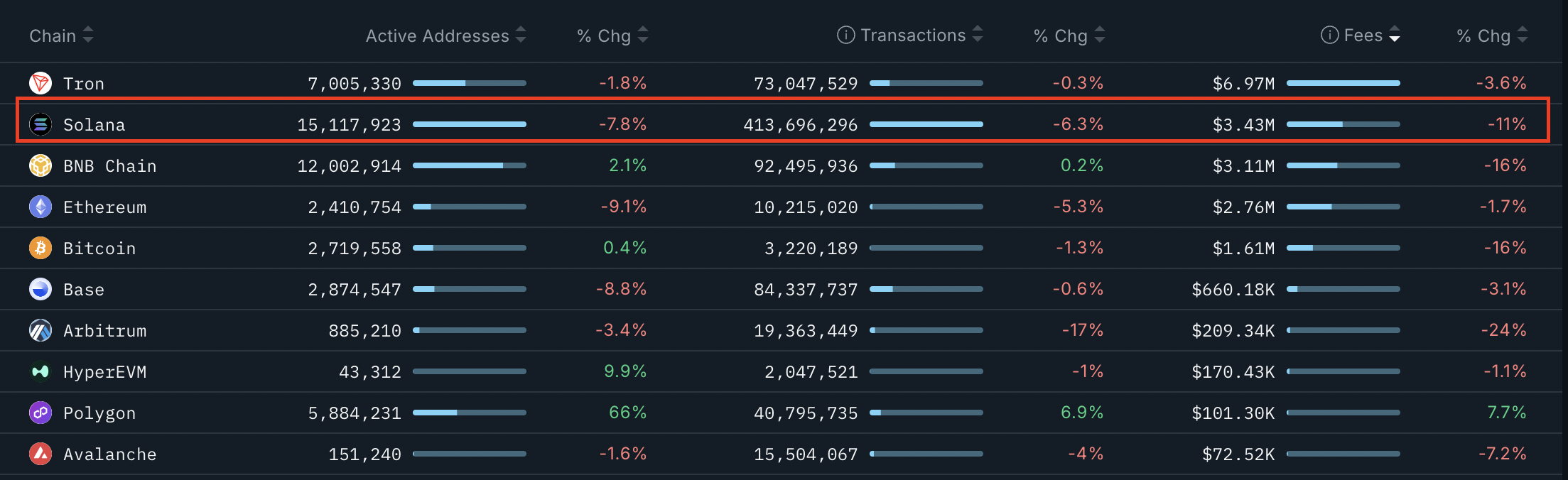 Likewise, the number of active addresses (AAs) on Solana’s base layer decreased by 7.8% over the same period, while the number of transactions decreased by 6.3% over a seven-day period.