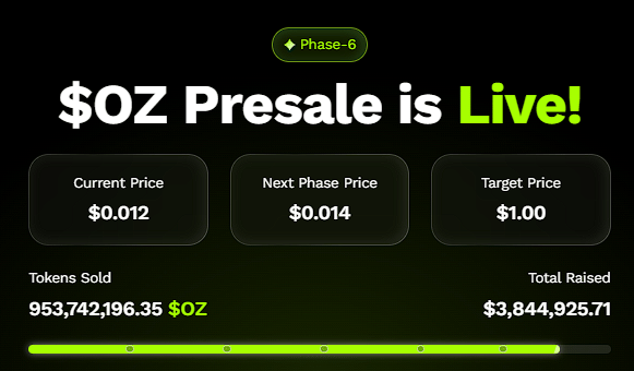 Ozak AI has emerged as one of the fastest growing premarket services in 2025, combining AI and blockchain technology in a practical and scalable way. Currently on the sixth Pre-sale geese At $0.0012, Ozak AI has already raised over $3.8 million and sold over 950 million tokens. Its partnership with the Perceptron Network provides access to over 700,000 AI nodes, empowering its forecasting agents for smarter, trust-based data solutions.