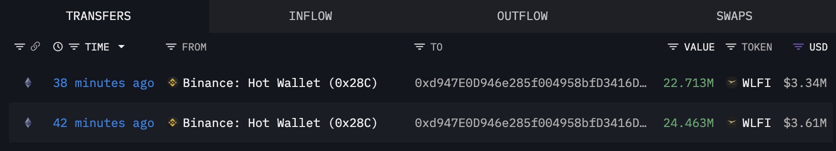 After retreating from the market, the whales returned to accumulating Global financial freedom [WLFI]. according to LoconchineThe newly created wallet, 0xd947, has withdrawn 47.18 million WLFI, worth $6.95 million, from Binance.